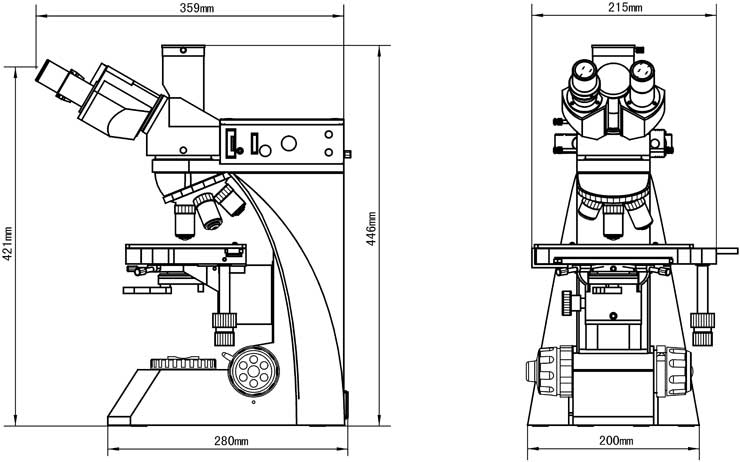 - Тринокуляр, можно переключаться на нормальное / поляризованное наблюдение, светло / темнопольное наблюдение. Можно направить 100% света, к бинокулярным окулярам или к верхнему порту